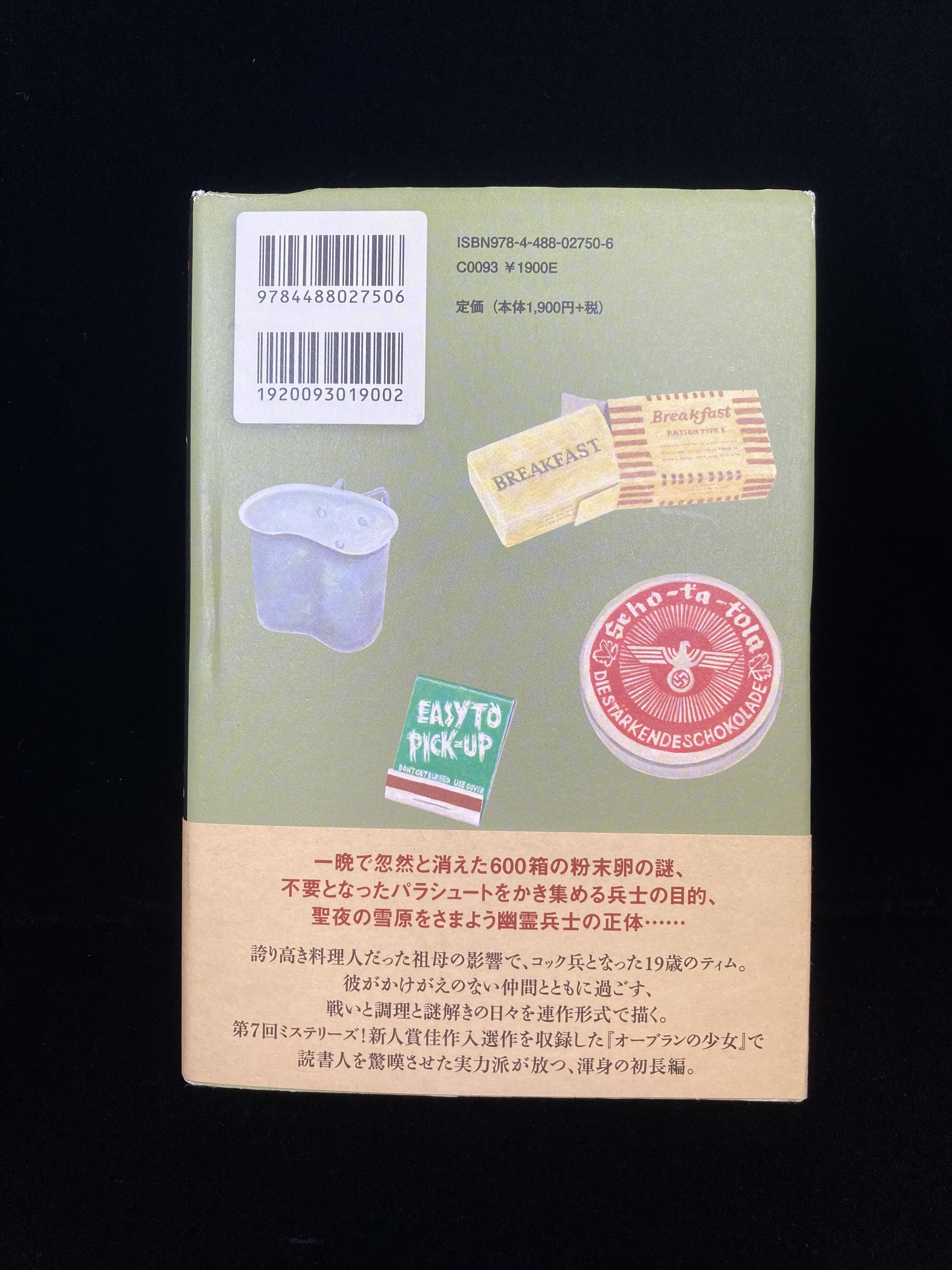 1944年6月、ノルマンディー上陸作戦が僕らの初陣だった。特技兵(コック)でも銃は持つが、主な武器はナイフとフライパンだ。新兵ティムは、冷静沈着なリーダーのエド、お調子者のディエゴ、調達の名人ライナスらとともに、度々戦場や基地で奇妙な事件に遭遇する。不思議な謎を見事に解き明かすのは、普段はおとなしいエドだった。忽然と消え失せた600箱の粉末卵の謎、オランダの民家で起きた夫婦怪死事件など、戦場の「日常の謎」を連作形式で描く、青春ミステリ長編。